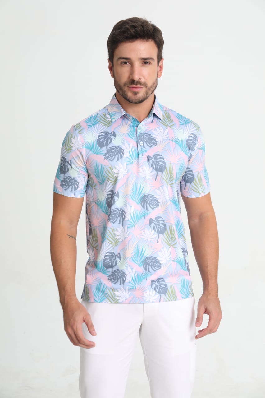 92% polyester & 8% spandex, which has the same functions as moisture wicking, anti-wrinkle, four way stretch and SPF 50+