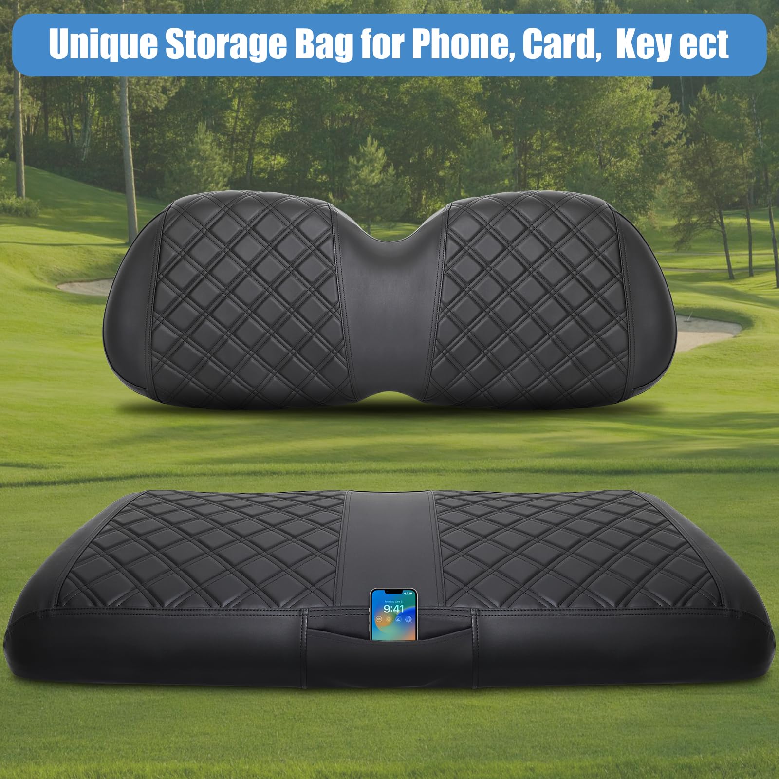 - ✅Upgrade Design: ①Smooth vinyl PVC leather material and black color make it easy to clean and dirty resistance. ②Small pocket for storing keys, cards, Phone etc. ③Square concave and convex design appearance makes your golf cart brand new and fashion.